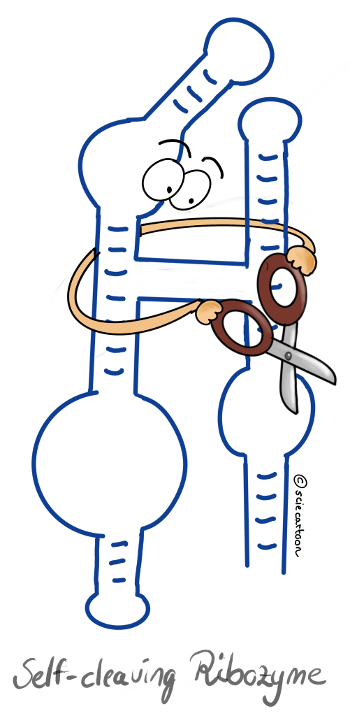 Ribonucleic acids (RNAs) are versatile molecules that fulfil a variety of essential functions within a cell. Some structured RNAs, called ribozymes, can catalyze chemical reactions to carry out sophisticated biological tasks. One such RNA-mediated chemical reaction is performed by self-cleaving ribozymes, which cut their own phosphate backbone at a specific site to generate two RNA fragments.